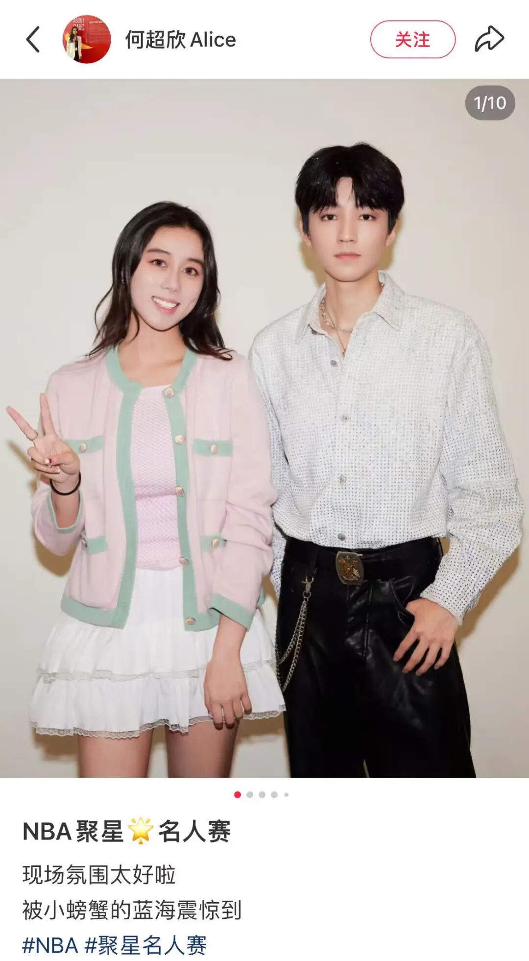 10月22日,“赌王”小女儿何超欣参加NBA聚星名人赛并在社交平台发文:现场氛围太好了,被小螃蟹的蓝海震惊到。她晒出和王俊凯的合照。何超欣粉嫩上衣搭配白色短裙,少女感满满;王俊凯则以简约又不失格调的造型亮相,俊朗有型。两人同框画面和谐又有反差感,很难不让人眼前一亮。